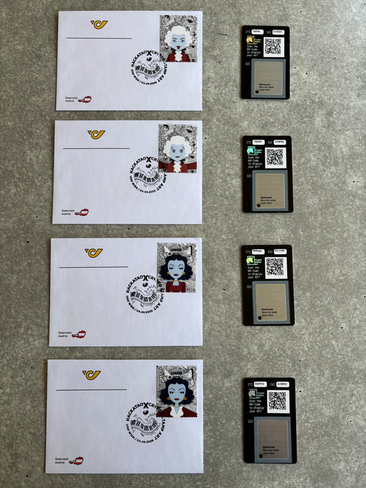Hackatao Stamp 2: Llamar & Mozart - FDC Set of all motives (green)