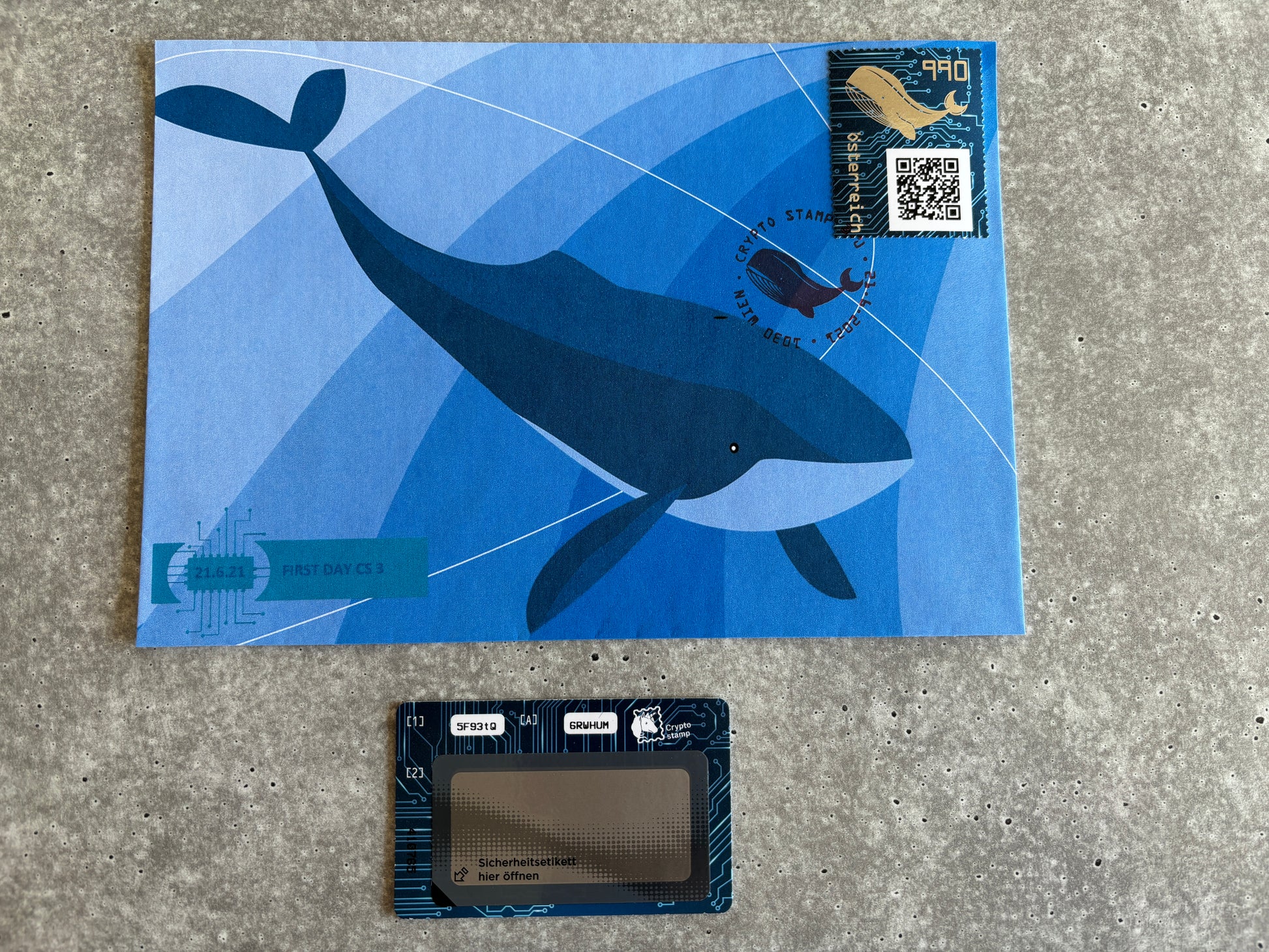 First Day Cover with Whale design envelope. With yellow CS3 whale stamp and official first day cancel.